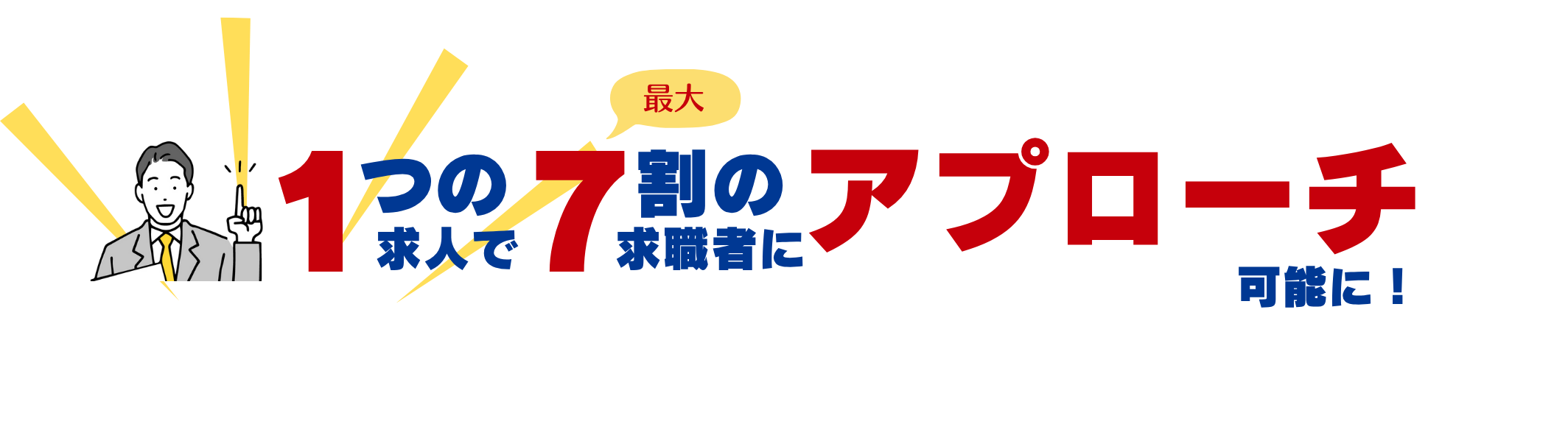 一度の求人投稿で国内主要求人サイト利用者の最大約7割※1に求人票が届きます※2。より多くの求職者へのアプローチが可能に。